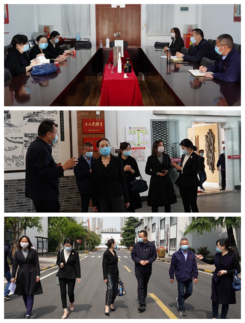 4月8日,漢陽區(qū)政協(xié)副主席甘瓊,經(jīng)科委主任紀(jì)勤,文史委主任邵碧玲一行調(diào)研黃鶴樓酒業(yè)復(fù)工復(fù)產(chǎn)情況。黃鶴樓酒業(yè)黨委書記、董事長許鵬,黨委副書記、副總經(jīng)理麻玉俠,黨委委員、總經(jīng)理助理魏國接待來訪。