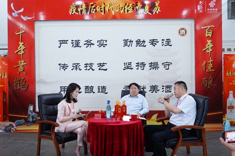 隨后,任永信、許鵬、吳瑾言在天成坊釀造車間以線上抖音直播與線下座談相結(jié)合的方式,就“疫情后時代的經(jīng)濟(jì)復(fù)蘇”為主題展開討論。許鵬表示,一直以來,黃鶴樓酒堅(jiān)持從選糧源頭開始把控產(chǎn)品品質(zhì),建立糧食基地,確保產(chǎn)品質(zhì)量。后疫情時代,有危就有機(jī),黃鶴樓酒業(yè)將以良心品質(zhì)、良心服務(wù)回饋社會、回饋消費(fèi)者。任永信表示,文化關(guān)鍵在化,管理重在于理,后疫情時代,以文化人以文化心,思想要有流動性,社會要有責(zé)任心,敬天愛人,用溫度和能量促進(jìn)社會發(fā)展。同時,任永信對黃鶴樓酒提出純、正、清、香的四字評價,他表示,與其等待不如乘勢而上,黃鶴樓酒業(yè)帶著感恩之心與奮進(jìn)之心釀造出精品好酒,堅(jiān)守傳統(tǒng)工藝,傳承楚酒文化。