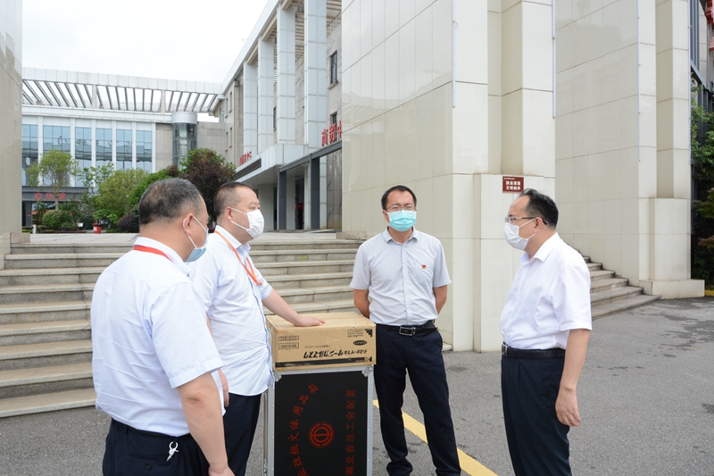 田運(yùn)雄一行為黃鶴樓酒業(yè)帶來口罩、職工文體用品等慰問物資,并詳細(xì)了解黃鶴樓酒業(yè)的復(fù)工復(fù)產(chǎn)情況,李良就黃鶴樓酒業(yè)不裁員、不減薪及公司銷售目標(biāo)不減等舉措做出具體介紹。