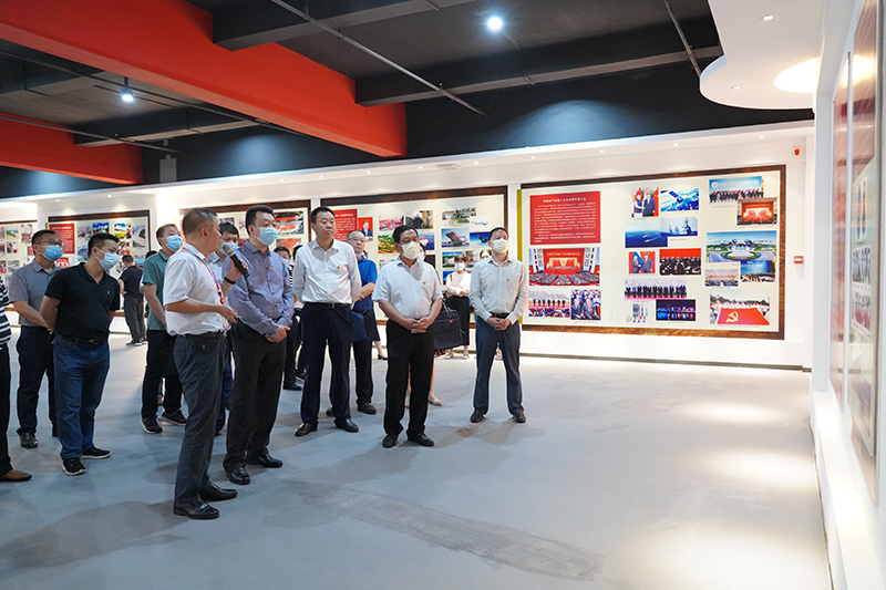 施政(中)一行與許鵬(右三)在黨建文化館合影