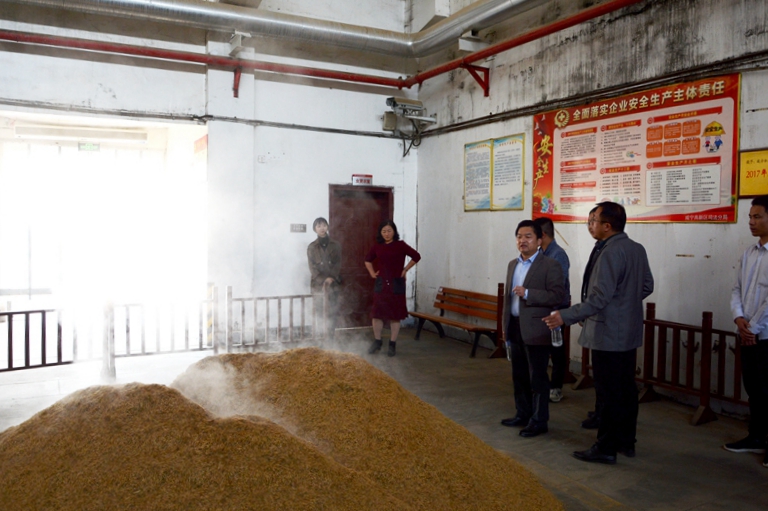 萬龍一行先后調(diào)研了黃鶴樓森林美酒小鎮(zhèn)景區(qū)商貿(mào)中心、黃鶴樓酒文化館、美酒銀行、洞釀第一坊、酒香花果山等景點。調(diào)研中,李良詳細介紹了黃鶴樓酒業(yè)(咸寧)有限公司的新建項目及陶壇林項目規(guī)劃,并就黃鶴樓酒釀造原料、工藝流程與萬龍進行深入討論。