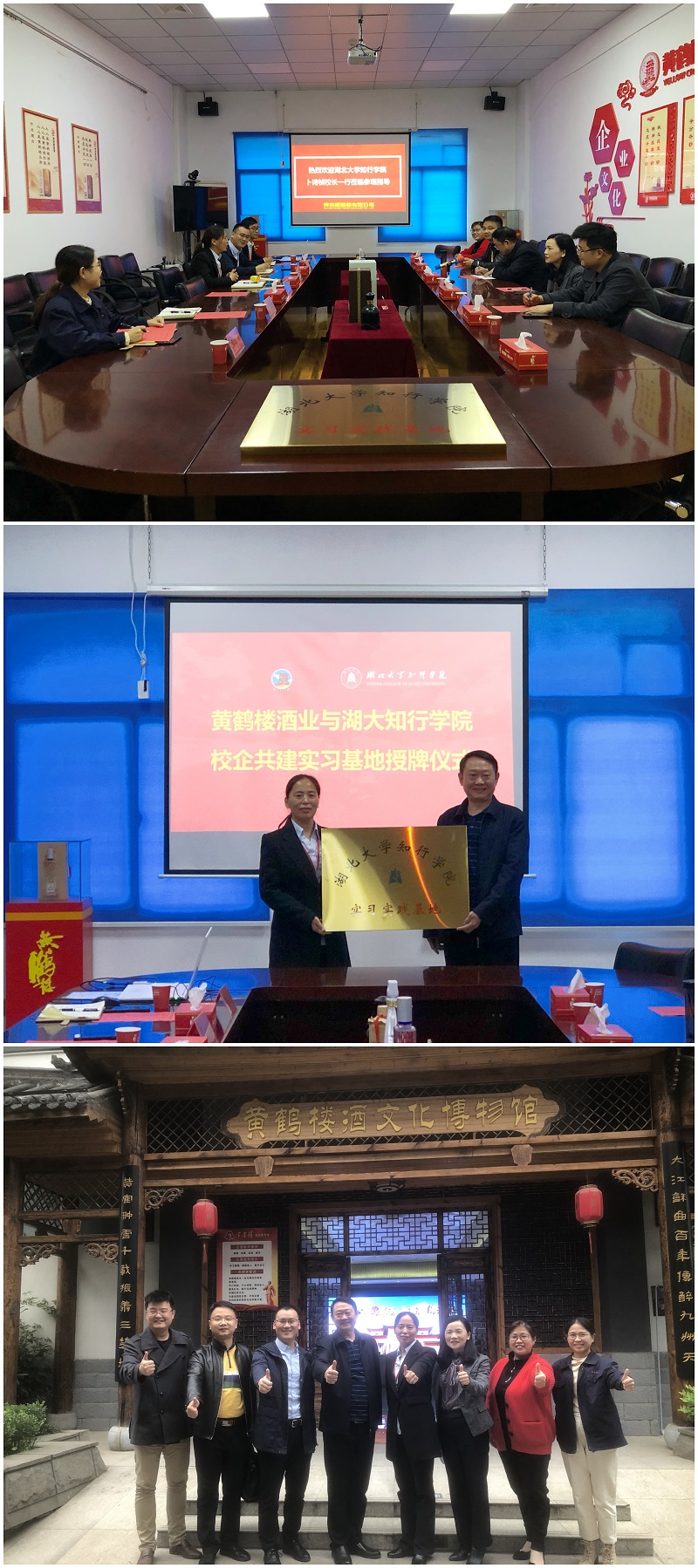 11月5日,湖北大學(xué)知行學(xué)院校長卜詩楨,黨委委員、副校長鐘春敏、陳剛一行到黃鶴樓酒業(yè)參觀交流,黃鶴樓酒業(yè)黨委副書記、副總經(jīng)理麻玉俠接待來訪。