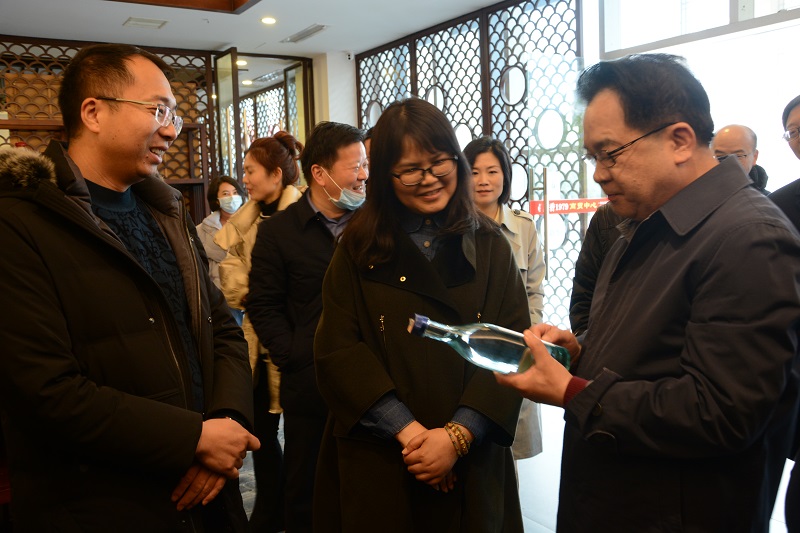 曾國平一行先后調(diào)研了商貿(mào)中心、黃鶴樓酒文化館、檢測中心、美酒銀行等場所。在商貿(mào)中心,李良介紹黃鶴樓桂花清酒的釀造原料和生產(chǎn)工藝,并邀請肖筠一行品鑒黃鶴樓原漿美酒,在美酒銀行,李良介紹了黃鶴樓酒“洞釀洞藏”的釀造工藝和儲存環(huán)境。