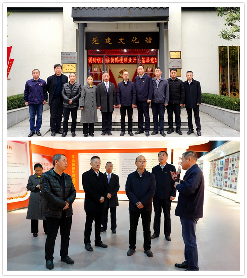 12月16日,湖北省委調(diào)研組組長、襄陽市委組織部副部長張再東,湖北省委黨建辦學會工作處處長、一級調(diào)研員覃敏,天門市委組織部副部長張正德,襄陽市委組織部組織二科副科長姜超一行到黃鶴樓酒業(yè)開展基層黨建綜合調(diào)研。武漢市委巡察辦副主任梅新斌,武漢市委組織部組織二處副處長肖何,漢陽區(qū)委組織部副部長李善華陪同調(diào)研,黃鶴樓酒業(yè)黨委書記、董事長許鵬,黨委委員、副總經(jīng)理魏國參加調(diào)研。