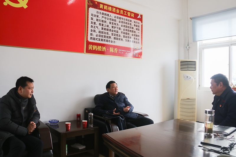 2月9日,隨州市經濟和信息化局黨組成員、總經濟師王洪剛到黃鶴酒業(yè)(隨州)有限公司調研企業(yè)開工和項目建設情況,隨州高新區(qū)經濟發(fā)展局局長魏建業(yè)陪同調研,黃鶴樓酒業(yè)黨委委員、隨州分廠廠長閔波平接待來訪。