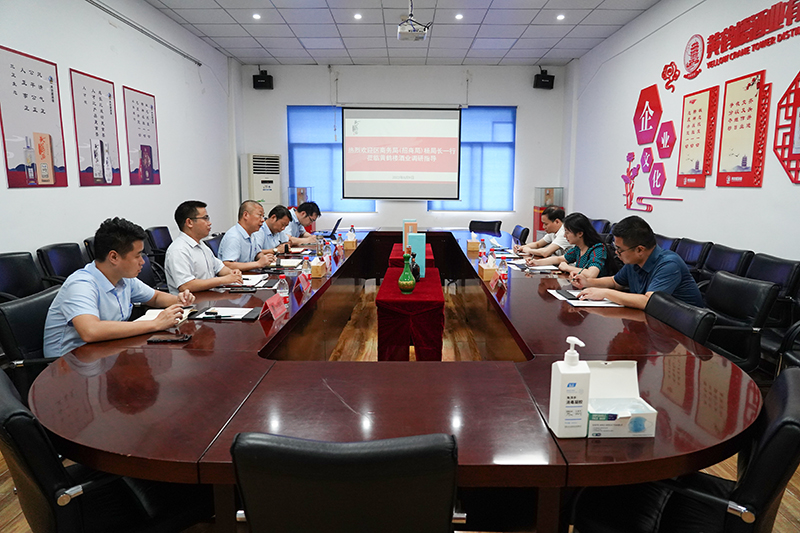 6月9日,漢陽區(qū)商務(wù)局副局長楊雯娟、洲頭街紀工委書記高斌一行到黃鶴樓酒業(yè)調(diào)研企業(yè)現(xiàn)狀,了解企業(yè)難題。公司黨委委員、副總經(jīng)理魏國參加座談會。
