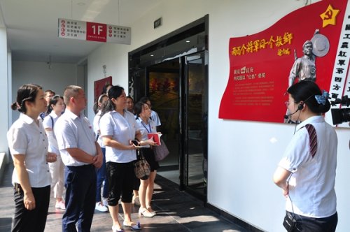 在紅安黨支部書記葉小紅的陪同下,魏國一行首先參觀了紅色展廳、紅色文化長廊、黨團(tuán)活動(dòng)室、職工活動(dòng)室等黨建工作陣地。仔細(xì)查閱紅安黨建及“紅旗黨支部”創(chuàng)建工作資料,聆聽了紅安黨支部自創(chuàng)的歌曲《紅色足跡》,詳細(xì)了解“三評(píng)一贊”工作法、黨員“微承諾”、支部組織生活等基層黨建工作情況。