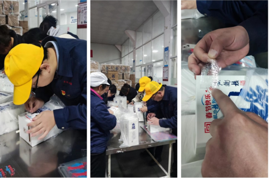正逢年底生產(chǎn)旺季,為確保春節(jié)定制版產(chǎn)品順利交付,生產(chǎn)黨支部響應(yīng)號(hào)召,積極發(fā)揮黨員先鋒模范作用,開(kāi)展產(chǎn)品貼標(biāo)活動(dòng)。時(shí)間緊、任務(wù)重,在車間工作人員指導(dǎo)下,大家有序進(jìn)行,埋頭苦干、一絲不茍,與一線員工齊奮斗,本著不浪費(fèi)一張標(biāo),不貼花一個(gè)盒子原則,保質(zhì)保量完成任務(wù)。
