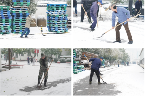 清晨七時半,志愿團隊早早集合在廠區(qū)開始除雪準備,為員工步行、車行、旺季發(fā)貨開辟安全通道。往來員工也自發(fā)加入掃雪團隊,大家利用鐵鍬、掃帚、推板等工具,齊心協(xié)力、配合默契,認真清掃道路積雪,鏟除凝固冰層,在冰雪中開辟暢通之路。