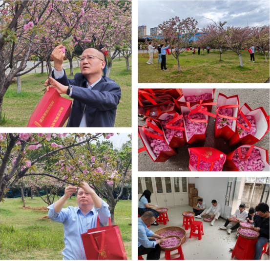 活動(dòng)開(kāi)始前,技術(shù)質(zhì)量中心相關(guān)人員介紹了櫻花采摘要求。隨后,在春日高照下,大家進(jìn)入櫻花園,專心致志挑選、采摘櫻花,左腕提袋,右手摘花,輕摘輕放,去梗去葉,熱情滿滿。在20余名黨員的共同努力下,共采摘櫻花20余斤。
