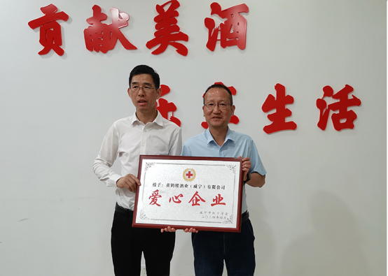 會(huì)上,胡漢雄代表咸寧市紅十字會(huì)向黃鶴樓酒業(yè)(咸寧)有限公司授予咸寧市“愛(ài)心企業(yè)”稱(chēng)號(hào)。