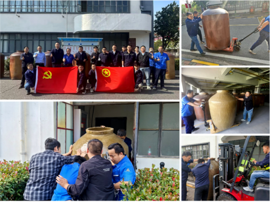 在轉(zhuǎn)移過(guò)程中,面對(duì)體型龐大、重量驚人的大陶壇,大家團(tuán)結(jié)協(xié)作,采取科學(xué)高效的分組分工方式,確保搬運(yùn)過(guò)程安全有序進(jìn)行。經(jīng)過(guò)數(shù)小時(shí)的不懈奮戰(zhàn),33個(gè)噸位級(jí)大陶壇被順利搬運(yùn)到廠(chǎng)區(qū)指定區(qū)域,并進(jìn)行了景觀(guān)設(shè)計(jì),為武漢廠(chǎng)區(qū)增添了一道亮麗的風(fēng)景線(xiàn)。