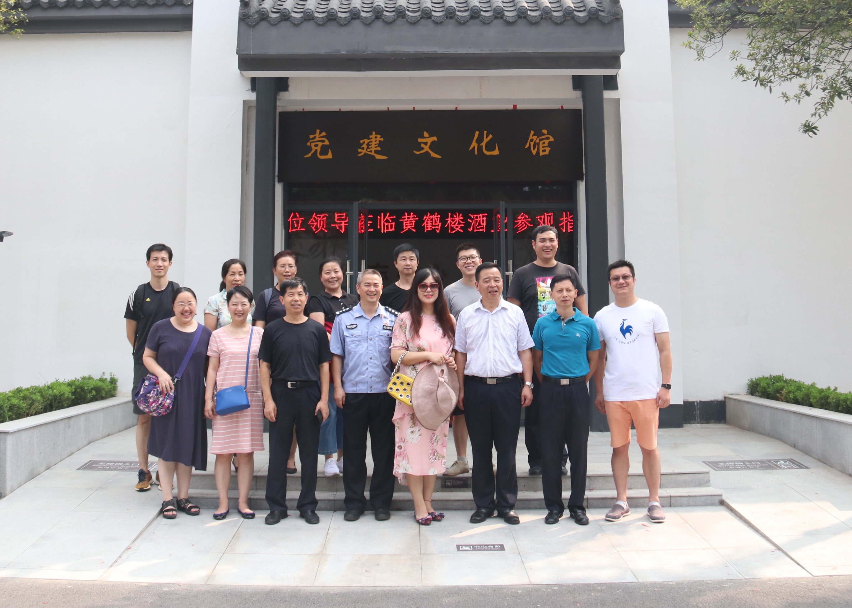 8月24日,武漢市公安局工會主席蔡賢賀一行參觀調研黃鶴樓酒業(yè)。黨工團中心總監(jiān)許鳳娥陪同參觀。