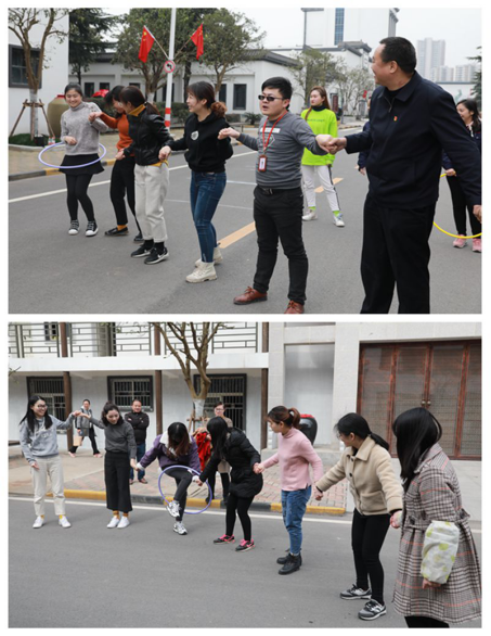 團(tuán)體賽“傳遞呼啦圈”是一個(gè)速度與協(xié)作兼并的比賽,各隊(duì)選手們要相互配合傳遞呼啦圈,7名隊(duì)員手牽手保證呼啦圈不落地,并讓呼啦圈穿過每一位隊(duì)員。最終行政服務(wù)隊(duì)用時(shí)最短,以42秒的優(yōu)異成績(jī)獲得第一名。